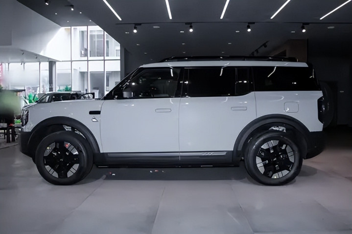 车身侧面是我个人认为智趣烈马最耐看的角度。高耸的车身姿态配合外扩明显的轮拱,让整台车显得非常有“站姿”,看着就有一种很能扛事的感觉。侧面的线条并不复杂,但比例拿捏得很到位,短前后悬的设计让车身看起来更加紧凑,也为通过性打下了基础。